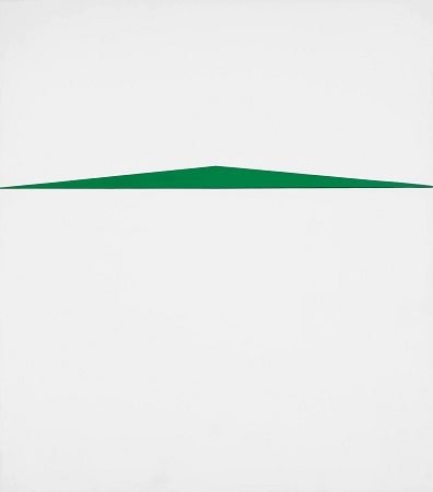 One of Carmen Herrera’s most celebrated works, “Blanco y Verde,” exemplifies her mastery of geometric abstraction.